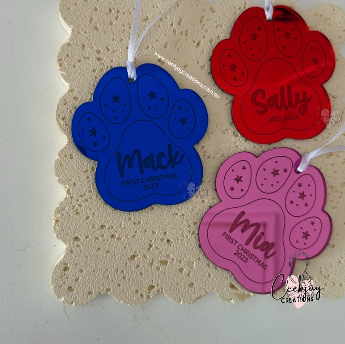 The pets in your family also deserve a perfect spot on the tree. Our stunning mirror acrylics come in many colours to go with your Christmas decoration.