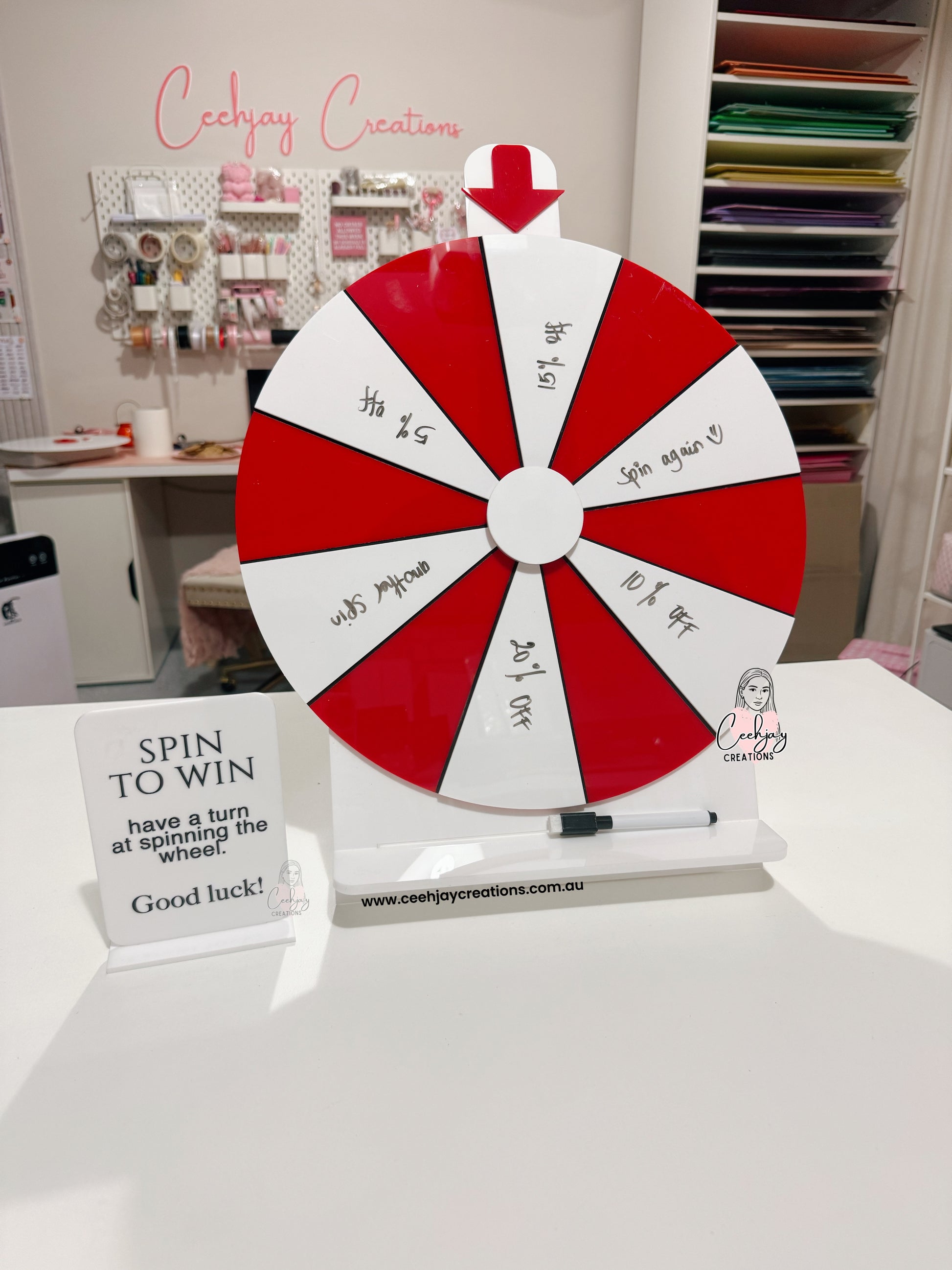 Transform customer interactions with our personalised acrylic spin-the-wheel game, purpose-built for high-impact promotional environments such as giveaways, in-store promotions, bridal expos, and more.