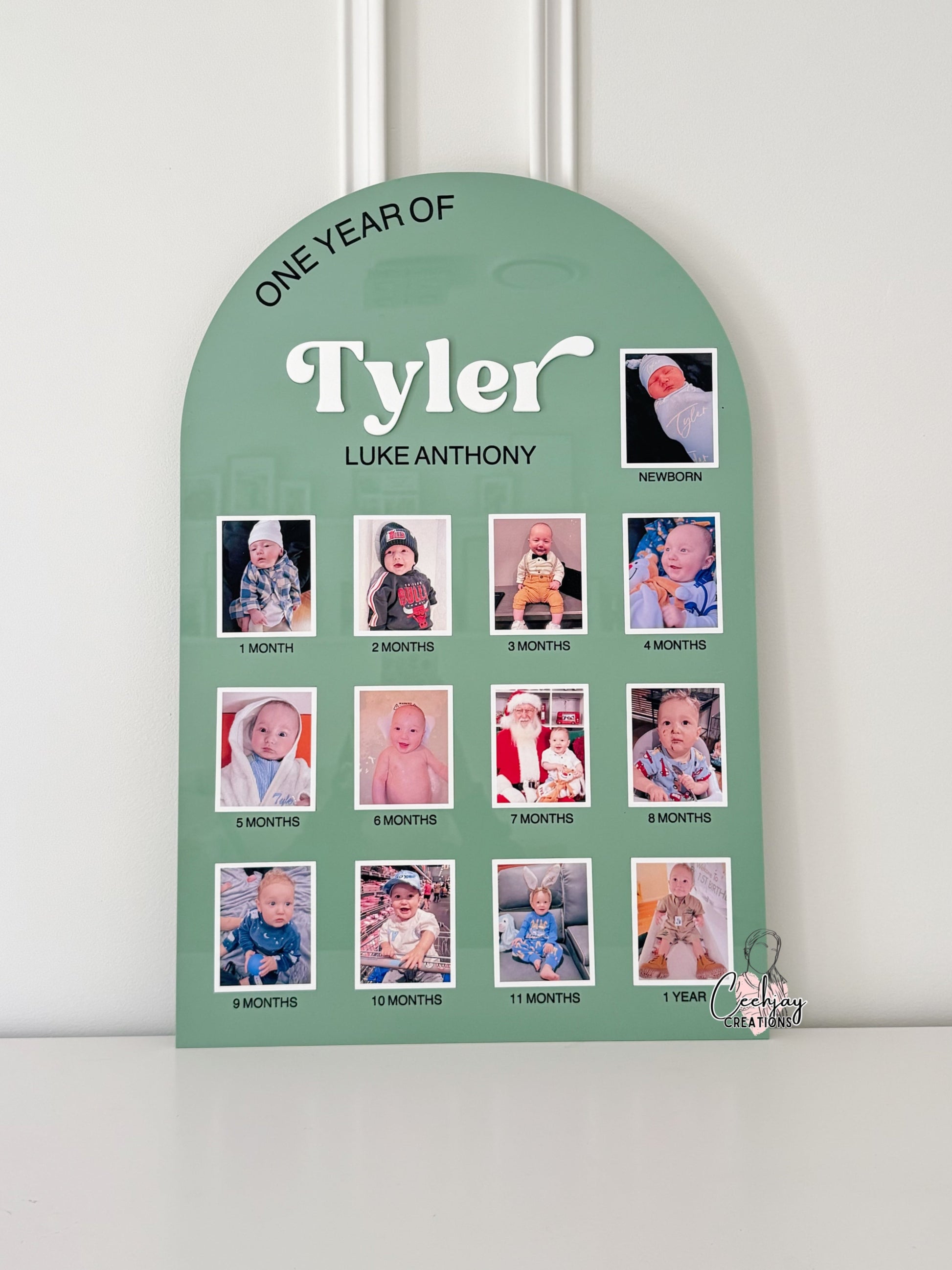 Capture and cherish your child's first year with our personalised milestone photo board. Display their progress from newborn to 1st Birthday with this versatile and durable board. Expertly crafted with high-quality acrylic materials, it's the perfect keepsake for parents to commemorate their little one's growth.