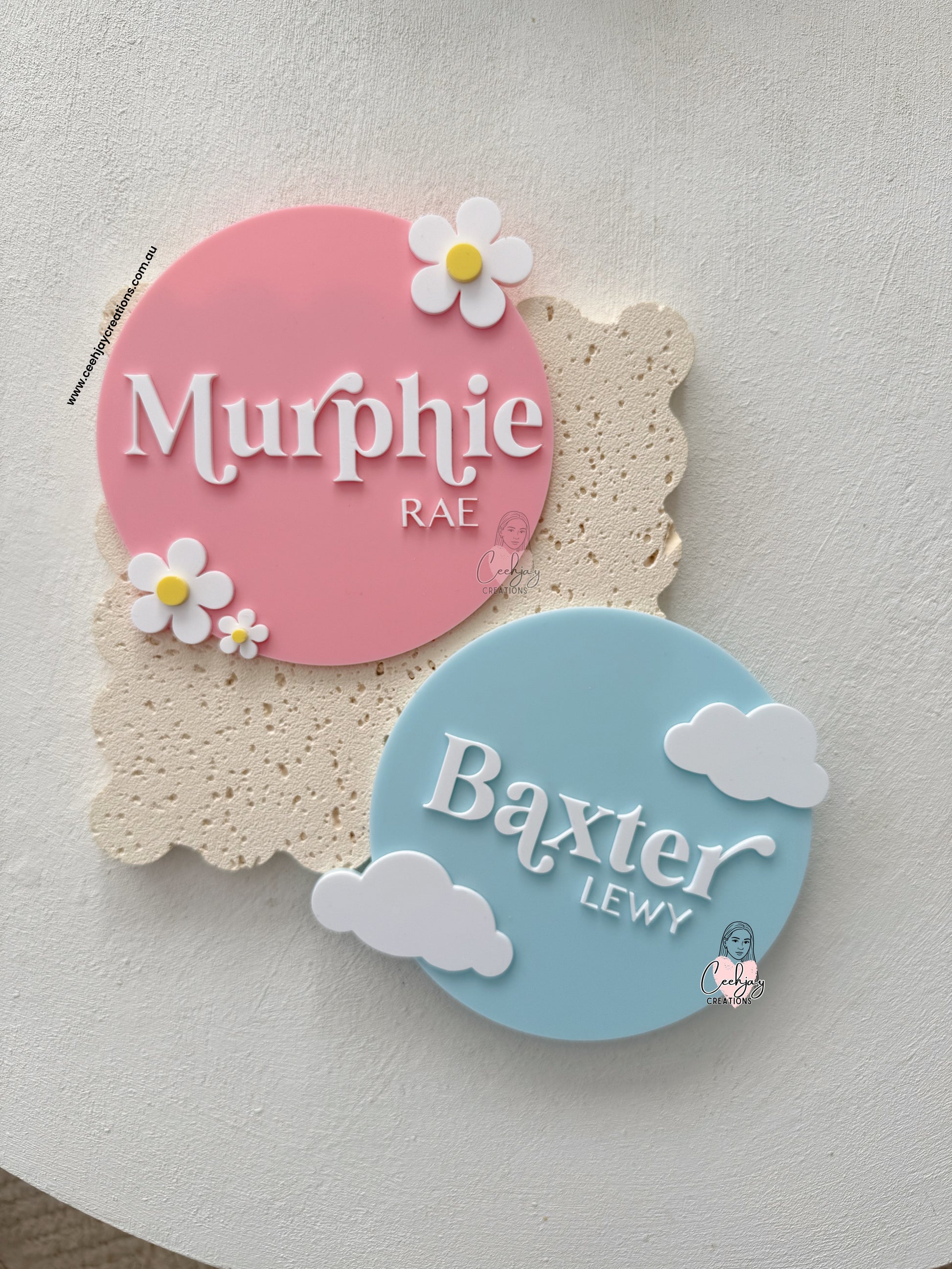 Add a personal touch to your nursery decor with our Round Name Plaque. Made from durable wooden ply or acrylic, this plaque is customisable with your little one's name. Celebrate their arrival and elevate their room's style at the same time.